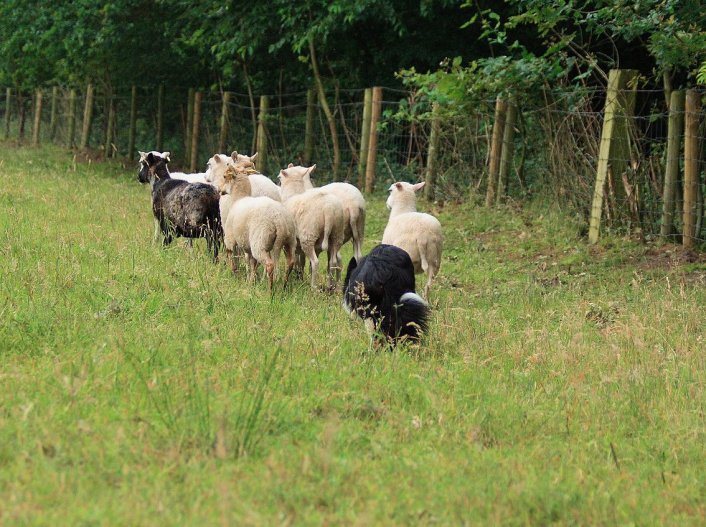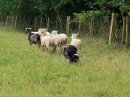 Dirk hatte für das Seminar eine größere Gruppe Schafe ausgewählt, so konnte man oft die Tiere wechseln, aber auch immer für den jeweiligen Gebrauch die passende Gruppe zusammen stellen.