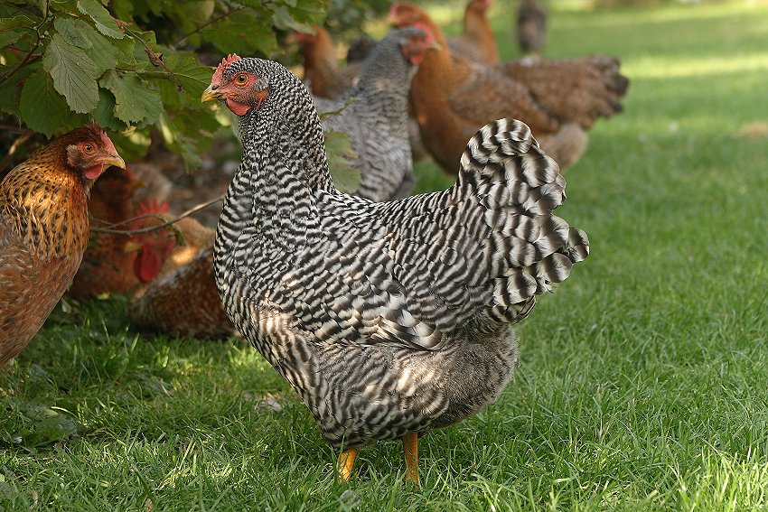 Die Hennen sind sehr fleißige Eierleger und im Umgang völlig unkompliziert. Auch der Hahn ist sehr freundlich und zu seinen Damen immer sehr höflich und zuvorkommend.