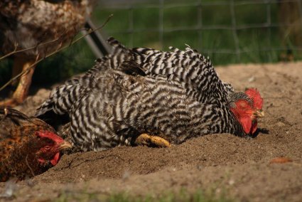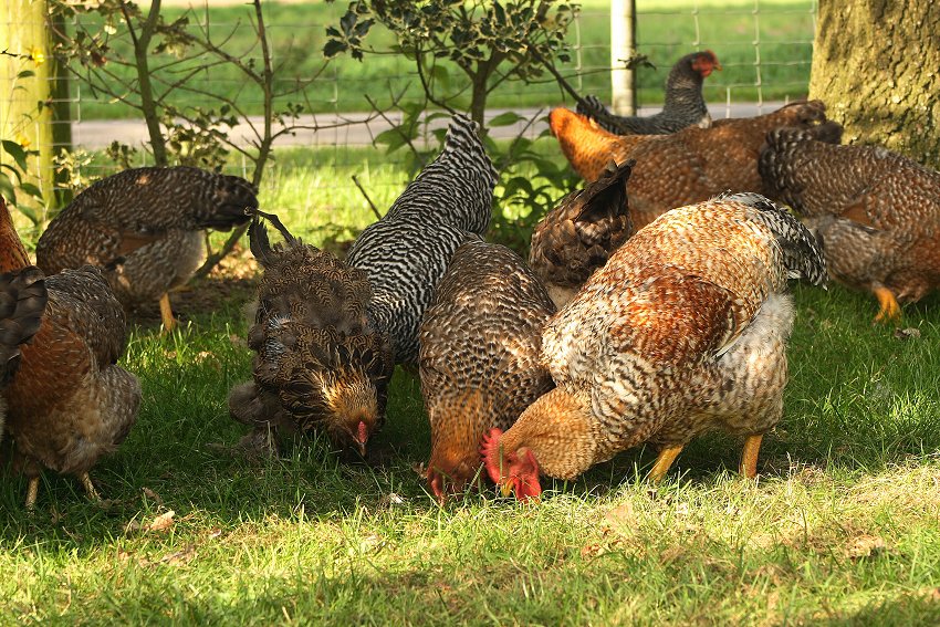 Dort können sie im Gras scharren, unter der Hecke dösen oder im Sandbad ausgiebig baden.